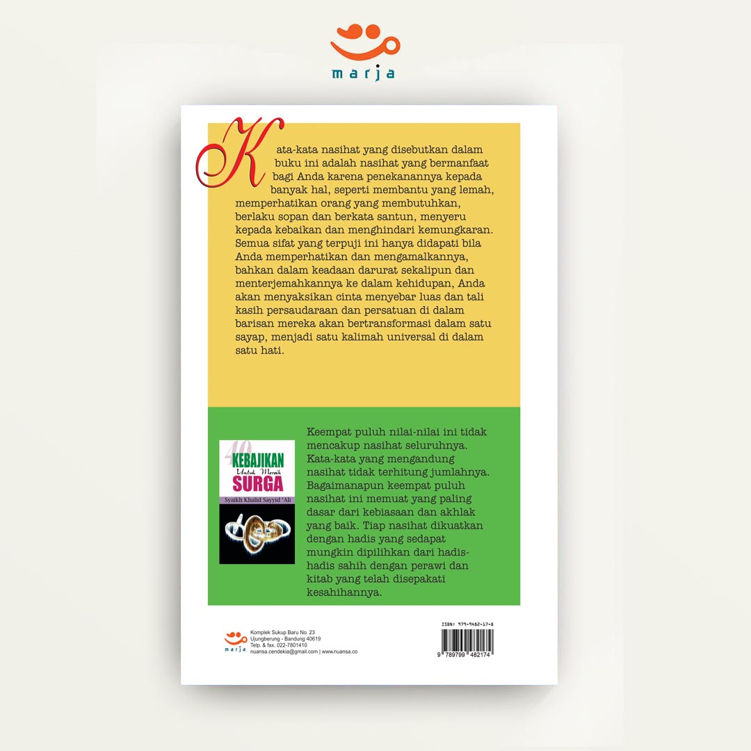 Buku "40 Kebajikan Untuk Meraih Surga" adalah panduan spiritual dan moral yang merangkum empat puluh amalan atau perbuatan baik (kebajikan) yang bersumber dari ajaran Islam, yang diyakini dapat menjadi jalan bagi seorang Muslim untuk mencapai keridaan Allah SWT dan mendapatkan balasan surga di akhirat. Buku ini menyajikan penjelasan yang praktis dan mudah dipahami mengenai makna dan cara pengamalan dari setiap kebajikan tersebut, mulai dari amalan yang berkaitan dengan ibadah ritual hingga muamalah (hubungan sosial) seperti berbakti kepada orang tua, sedekah, dan menjaga lisan, sehingga mendorong pembaca untuk mengaplikasikan nilai-nilai mulia tersebut dalam kehidupan sehari-hari.