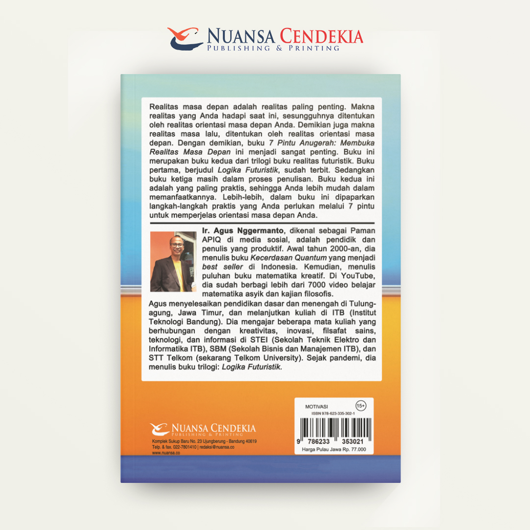 Buku 7 Pintu Anugerah: Pembuka Realitas Masa Depan menyajikan panduan motivasi dan spiritual yang berfokus pada tujuh prinsip atau kunci utama yang diyakini dapat membuka potensi tak terbatas dan mewujudkan masa depan yang cemerlang bagi individu. Konsep “Tujuh Pintu Anugerah” ini berfungsi sebagai kerangka kerja praktis yang memadukan pengembangan diri, spiritualitas, dan hukum alam semesta (seperti hukum tarik-menarik atau hukum sebab-akibat), meliputi aspek-aspek seperti niat yang murni, keyakinan yang kuat, rasa syukur, pengampunan, hingga tindakan yang terfokus. Inti dari buku ini adalah mengajarkan pembaca cara menyelaraskan pikiran, hati, dan tindakan mereka untuk memanfaatkan energi positif dan anugerah Ilahi, sehingga mereka dapat menjadi arsitek aktif dari realitas dan takdir masa depan yang mereka impikan.