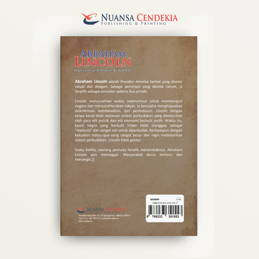 Abraham Lincoln: Negarawan yang Melawan Perbudakan adalah biografi mendalam yang menyoroti kehidupan dan warisan Abraham Lincoln, Presiden Amerika Serikat ke-16, dengan fokus utama pada perannya sebagai negarawan yang berjuang keras untuk menghapuskan praktik perbudakan. Buku ini mengupas perjalanan hidup Lincoln, mulai dari masa-masa awal yang sederhana, kepemimpinannya yang krusial selama Perang Saudara Amerika, hingga penetapan Proklamasi Emansipasi, yang secara fundamental mengubah tatanan moral dan hukum negara. Karya ini menggarisbawahi kegigihan, kecerdasan politik, dan komitmen moral Lincoln dalam menghadapi perpecahan domestik yang paling mendalam, menjadikannya simbol persatuan, keadilan, dan perjuangan abadi untuk kesetaraan hak asasi manusia.