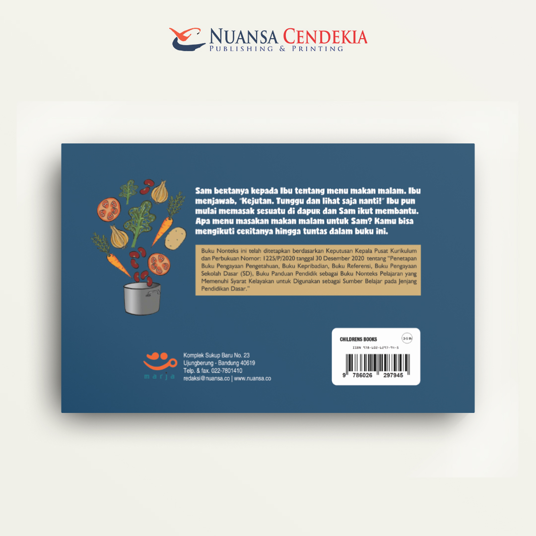 Sam bertanya kepada Ibu tentang menu makan malam. Ibu menjawab, “Kejutan. Tunggu dan lihat saja nanti!” Ibu pun mulai memasak sesuatu di dapur dan Sam ikut membantu. Apa menu masakan makan malam untuk Sam? Kamu bisa mengikuti ceritanya hingga tuntas dalam buku ini.
