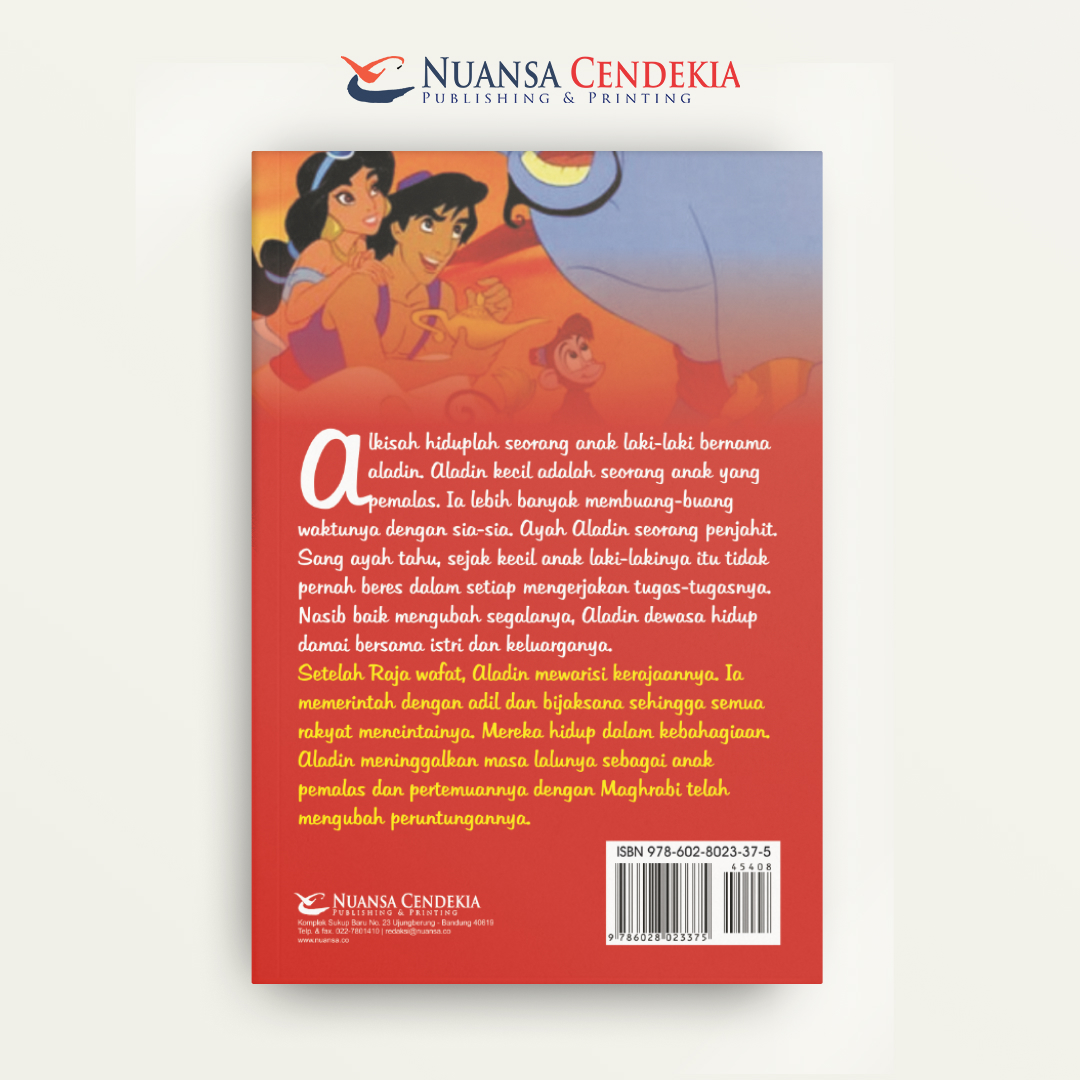 Buku ini menceritakan petualangan Aladin, seorang pemuda miskin namun berhati mulia, yang nasibnya berubah drastis setelah ia diperdaya oleh seorang penyihir jahat untuk mengambil sebuah lampu tua dari dalam gua terlarang. Ketika terjebak di dalam gua, Aladin secara tidak sengaja menggosok lampu tersebut dan memanggil Jin yang luar biasa sakti, yang berjanji akan mengabulkan tiga permintaannya. Dengan bantuan Jin lampu ajaib, Aladin berhasil melepaskan diri dari kemiskinan dan menyamar sebagai pangeran kaya raya untuk memenangkan hati Putri Jasmine. Namun, kebahagiaannya terancam ketika penyihir jahat berhasil merebut lampu ajaib itu kembali, memaksa Aladin untuk menunjukkan keberanian dan kecerdikannya tanpa bantuan sihir demi menyelamatkan sang putri dan kerajaannya.