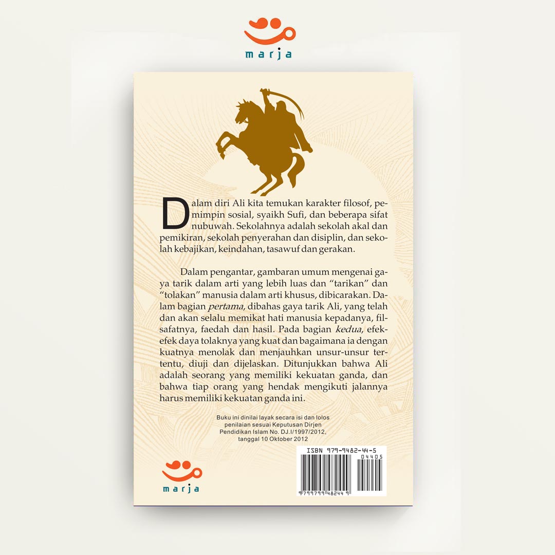 Dalam pengantar, gambaran umum mengenai gaya tarik dalam arti yang lebih luas dan “tarikan” dan “tolakan” manusia dalam arti khusus, dibicarakan. Dalam bagian pertama, dibahas gaya tarik Ali, yang telah dan akan selalu memikat hati manusia kepadanya, filsafatnya, faedah dan hasil. Pada bagian kedua, efek-efek daya tolaknya yang kuat dan bagaimana ia dengan kuatnya menolak dan menjauhkan unsur-unsur tertentu, diuji dan dijelaskan. Ditunjukkan bahwa Ali adalah seorang yang memiliki kekuatan ganda, dan bahwa tiap orang yang hendak mengikuti jalannya harus memiliki kekuatan ganda ini.