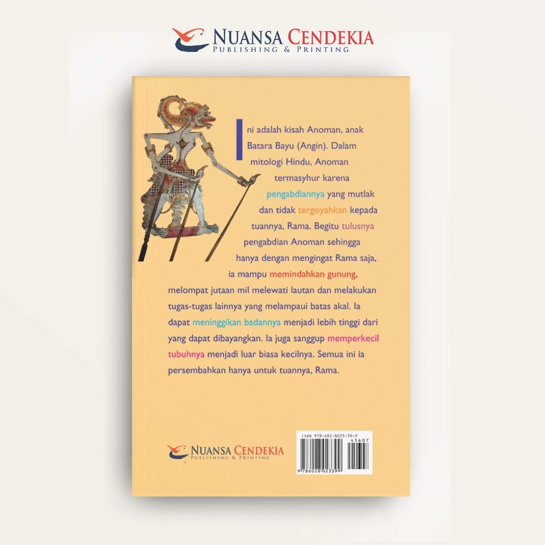 Buku "Anoman: Seri Cerita Anak & Remaja" menyajikan kisah epik tokoh pewayangan populer, Anoman (Hanuman), kera putih sakti dan setia, dalam format yang mudah dicerna dan menarik bagi pembaca muda. Cerita ini fokus pada petualangan Anoman, putra Batara Bayu, dalam membantu Rama untuk menyelamatkan Dewi Sinta yang diculik oleh Rahwana. Buku ini merinci perjalanan heroiknya ke Alengka, keberaniannya dalam menghadapi rintangan dan raksasa, serta kesetiaan tanpa batas yang menjadi inti karakternya. Melalui kisah Anoman, buku ini tidak hanya memperkenalkan kekayaan budaya dan nilai-nilai luhur dari wiracarita Ramayana, tetapi juga menanamkan pesan moral tentang ketulusan, keberanian, dan pengorbanan yang patut diteladani oleh anak-anak dan remaja.