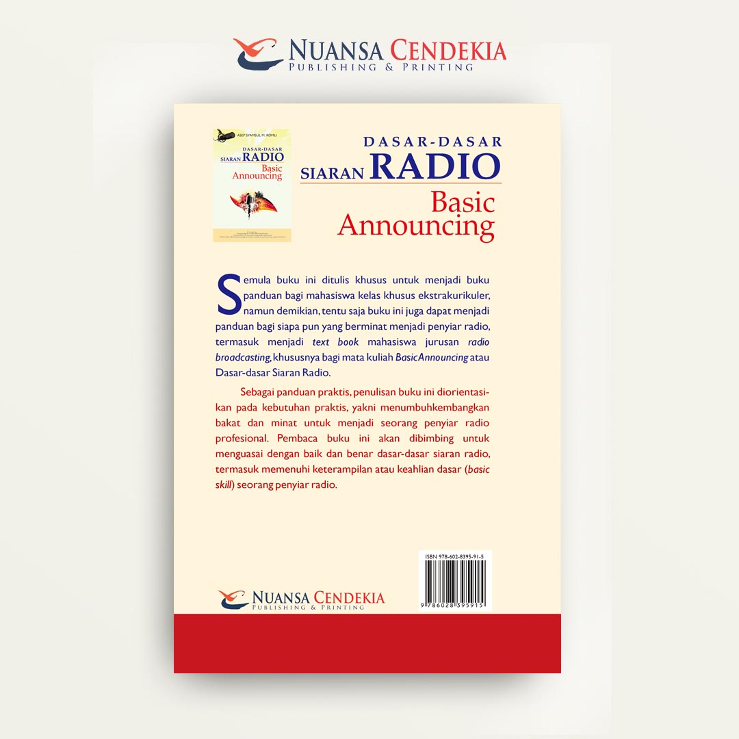 Basic Announcing, Dasar-Dasar Siaran Radio. Buku pegangan penyiar radio, podcaster, dan presenter TV. Dasar-Dasar Siaran Radio juga penting dalam vlogging, sehingga buku ini pun cocok bagi Youtuber atau Content Creator Video.