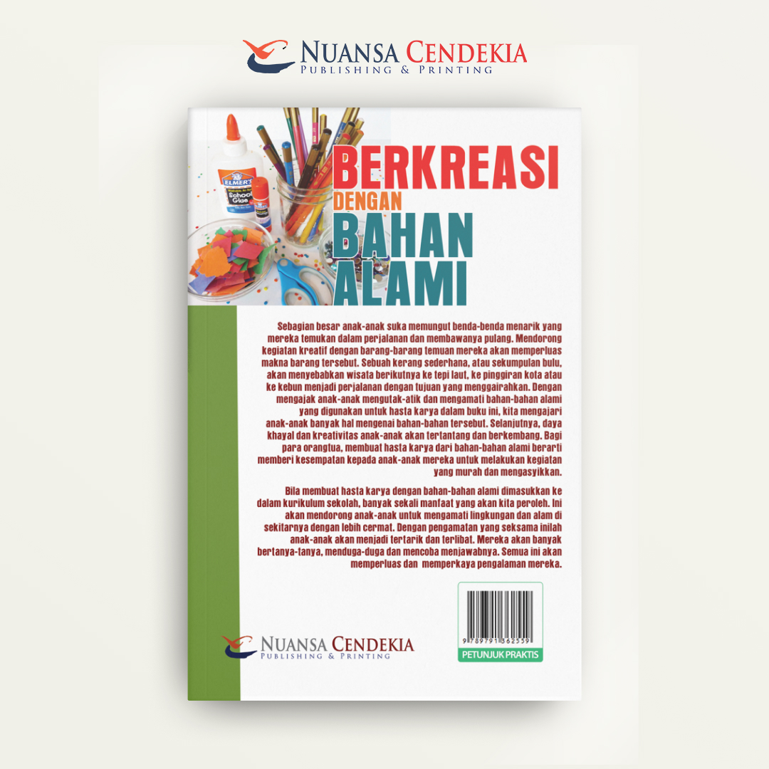 Buku Berkreasi Dengan Bahan Alami adalah panduan yang mendorong perkembangan kreativitas dan daya imajinasi anak-anak melalui kegiatan hasta karya yang murah dan menyenangkan, memanfaatkan benda-benda sederhana yang ditemukan di alam seperti kerang, bulu, dan bahan alami lainnya. Buku ini memberikan tantangan yang merangsang anak untuk mengamati lingkungan sekitar dengan lebih cermat, sehingga kegiatan berkreasi tidak hanya menghasilkan karya tetapi juga menjadi sarana belajar yang memperluas makna benda-benda temuan mereka, sekaligus membantu orang tua menyediakan aktivitas yang edukatif dan mengasyikkan.
