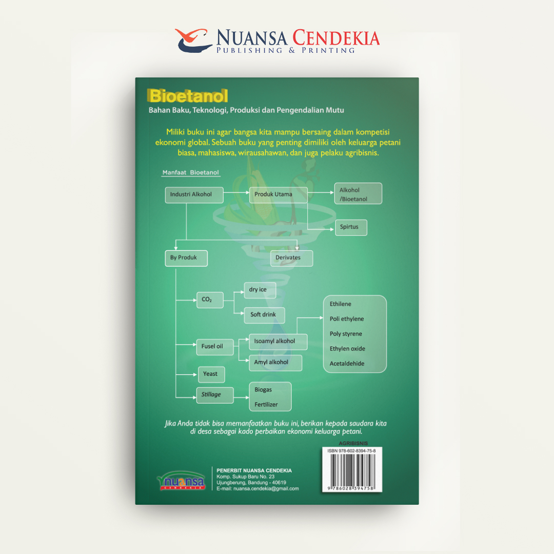 Buku Bioetanol; Bahan Baku, Teknologi, Produksi dan Pengendalian Mutu menyajikan tinjauan mendalam dan komprehensif mengenai bioetanol sebagai salah satu sumber energi terbarukan yang potensial. Secara terperinci, buku ini membahas identifikasi dan karakterisasi berbagai jenis bahan baku penghasil bioetanol, mulai dari tanaman berpati, bergula, hingga biomassa lignoselulosa. Selain itu, buku ini menguraikan berbagai teknologi fermentasi dan distilasi yang digunakan dalam skala produksi, serta fokus penting pada aspek pengendalian mutu produk akhir bioetanol agar memenuhi standar industri dan lingkungan, menjadikannya referensi esensial bagi akademisi, peneliti, maupun praktisi di bidang energi terbarukan.