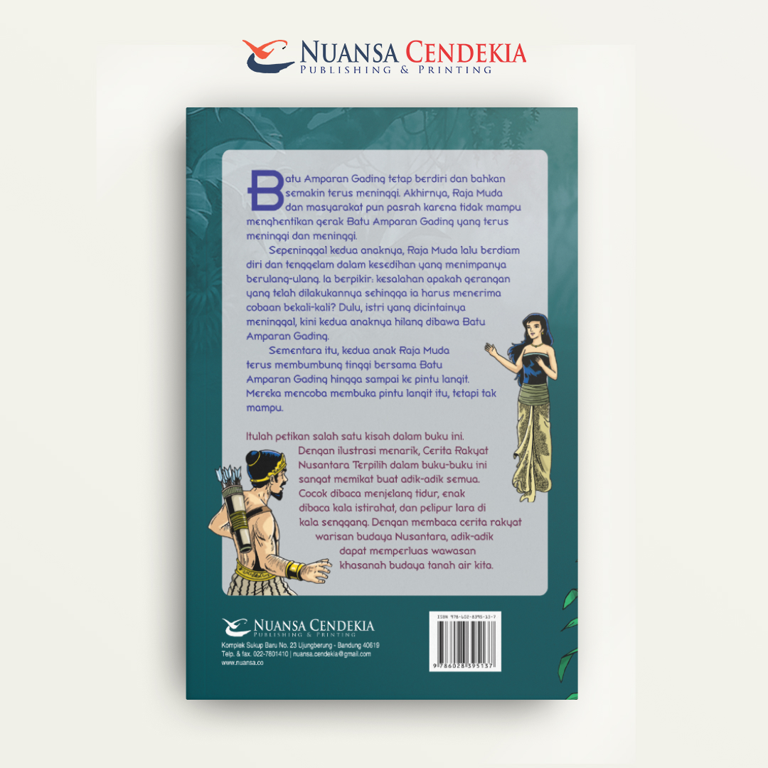 Itulah petikan salah satu kisah dalam buku ini. Dengan ilustrasi menarik, Cerita Rakyat Nusantara Terpilih dalam buku-buku ini sangat memikat buat adik-adik semua. Cocok dibaca menjelang tidur, enak dibaca kala istirahat, dan pelipur lara di kala senggang. Dengan membaca cerita rakyat warisan budaya Nusantara, adik-adik dapat memperluas wawasan khasanah budaya tanah air kita.[]