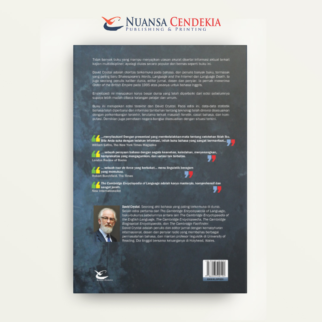 Ensiklopedi Bahasa: The Cambridge Encyclopedia of Language karya David Crystal adalah karya rujukan monumental yang menyajikan eksplorasi mendalam dan menyeluruh tentang bahasa manusia dalam segala aspeknya, menjadikannya buku yang mudah dipahami oleh pelajar hingga pembaca umum. Ensiklopedi ini mengulas segala hal, mulai dari asal-usul bahasa, keragaman linguistik global, struktur dan cara kerja bahasa (fonetik, tata bahasa, kosakata), hingga aplikasi bahasa dalam komunikasi modern, seperti perkembangan teknologi digital, bahasa isyarat, dan isu-isu kritis tentang kepunahan bahasa. Melalui visualisasi yang kaya, data statistik terbaru, dan penjelasan yang jernih, buku ini adalah perayaan keragaman bahasa dunia dan kekompleksan kognitif yang mendasarinya.