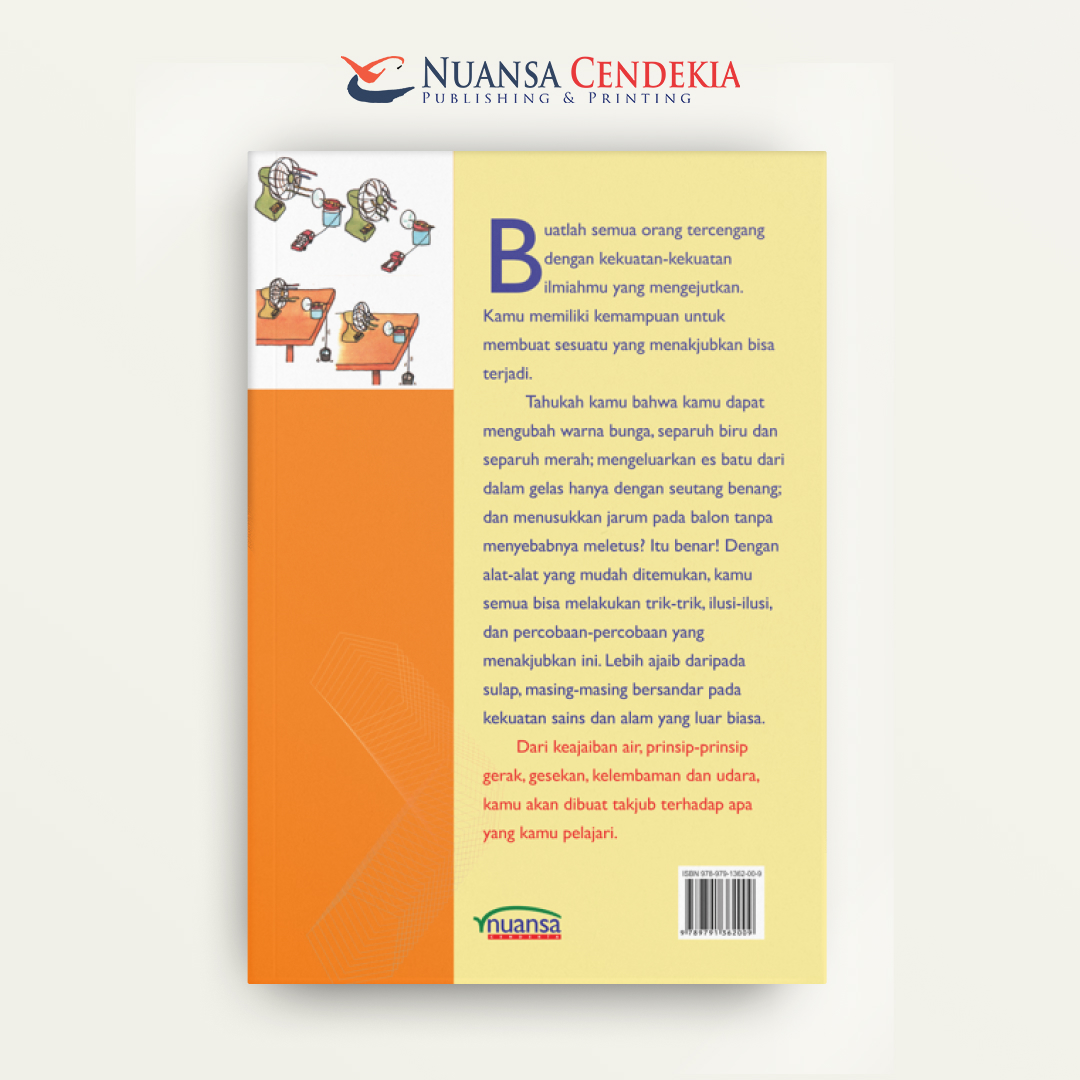 Tahukah kamu bahwa kamu dapat mengubah warna bunga, separuh biru dan separuh merah; mengeluarkan es batu dari dalam gelas hanya dengan seutang benang; dan menusukkan jarum pada balon tanpa menyebabnya meletus? Itu benar! Dengan alat-alat yang mudah ditemukan, kamu semua bisa melakukan trik-trik, ilusi-ilusi, dan percobaan-percobaan yang menakjubkan ini. Lebih ajaib daripada sulap, masing-masing bersandar pada kekuatan sains dan alam yang luar biasa.