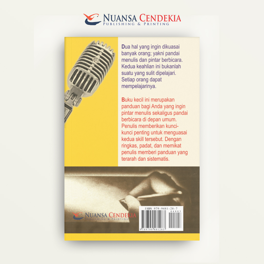 Dua hal yang ingin dikuasai banyak orang; yakni pandai menulis dan pintar berbicara. Kedua keahlian ini bukanlah suatu yang sulit dipelajari. Setiap orang dapat mempelajarinya. Buku kecil ini merupakan panduan bagi Anda yang ingin pintar menulis sekaligus pandai berbicara di depan umum. Penulis memberikan kunci-kunci penting untuk menguasai kedua skill tersebut. Dengan ringkas, padat, dan memikat penulis memberi panduan yang terarah dan sistematis.