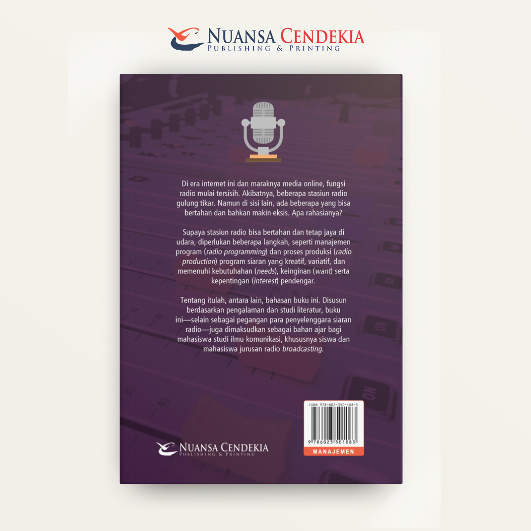 Buku ini merupakan panduan komprehensif yang mengupas tuntas dua pilar utama operasional stasiun radio, yaitu Manajemen Program (Radio Programming) dan Teknik Produksi Siaran. Pembaca akan dibekali pemahaman mendalam tentang bagaimana merencanakan, mengorganisir, dan mengevaluasi program siaran yang kreatif, variatif, dan relevan dengan kebutuhan pendengar, yang merupakan kunci bagi stasiun radio agar dapat bertahan dan eksis di tengah persaingan media digital. Selain itu, buku ini juga menjelaskan secara praktis elemen-elemen penting dalam produksi siaran, mulai dari penulisan naskah (copy-writing), penggunaan audio, sound effect, hingga kode etik penyiaran, menjadikannya referensi esensial bagi mahasiswa komunikasi maupun praktisi yang ingin menguasai seluk-beluk dunia penyiaran radio.