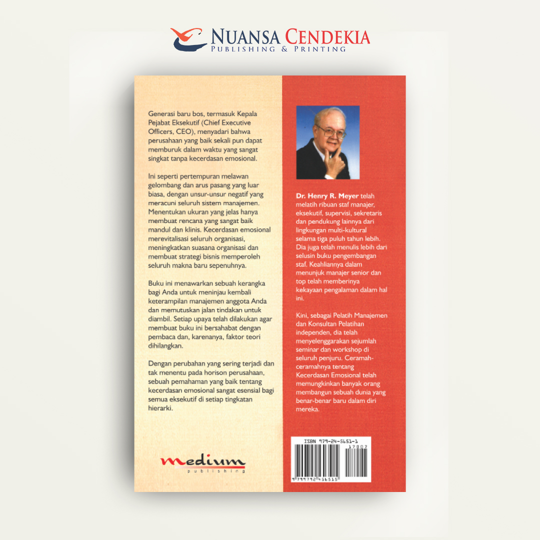 “Akal tidak dapat bekerja maksimal tanpa kecerdasan emosional”—Daniel Goleman. Generasi baru bos, termasuk Kepala Pejabat Eksekutif (Chief Executive Officers, CEO), menyadari bahwa perusahaan yang baik sekali pun dapat memburuk dalam waktu yang sangat singkat tanpa kecerdasan emosional. Buku ini menawarkan sebuah kerangka bagi Anda untuk meninjau kembali ketrampilan manajemen anggota Anda dan memutuskan jalan tindakan untuk diambil. Setiap upaya telah dilakukan agar membuat buku ini bersahabat dengan pembaca dan, karenanya, faktor teori dihilangkan. Dengan perubahan yang sering terjadi dan tak menentu pada horison perusahaan, sebuah pemahaman yang baik tentang kecerdasan emosional sangat esensial bagi semua eksekutif di setiap tingkatan hierarki.