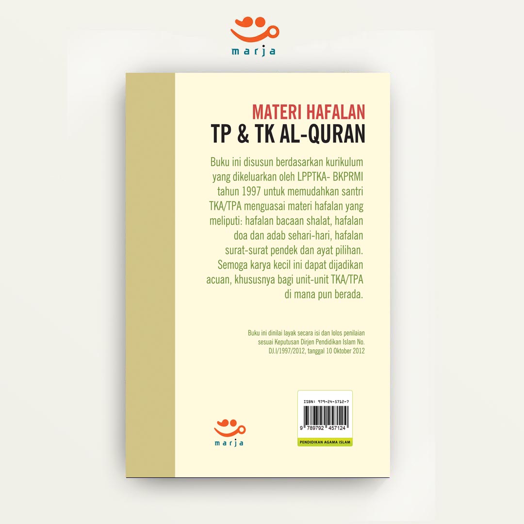 Buku Materi Hafalan TP & TK Al-Quran adalah panduan ringkas dan terstruktur yang secara spesifik disusun untuk mempermudah anak-anak usia dini (Taman Pengasuhan dan Taman Kanak-Kanak) dalam memulai perjalanan menghafal Al-Quran dan doa-doa penting. Materi dalam buku ini dipilih secara cermat, berfokus pada surah-surah pendek (Juz Amma) yang mudah diucapkan dan diingat, doa-doa harian yang relevan dengan aktivitas anak, serta hadis-hadis pilihan yang mengandung nilai-nilai moral dasar. Dengan format yang biasanya dilengkapi ilustrasi berwarna dan tata letak yang ramah anak, buku ini bertujuan menumbuhkan dasar-dasar kecintaan terhadap Al-Quran dan membentuk kebiasaan beribadah yang baik sejak usia prasekolah.
