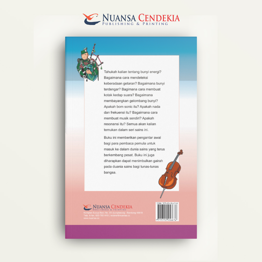 Tahukah kalian tentang bunyi energi? Bagaimana cara mendeteksi keberadaan getaran? Bagaimana bunyi terdengar? Bagimana cara membuat kotak kedap suara? Bagaimana membayangkan gelombang bunyi? Apakah bom sonic itu? Apakah nada dan frekuensi itu? Bagaimana cara membuat musik sendiri? Apakah resonansi itu? Semua akan kalian temukan dalam seri sains ini.
