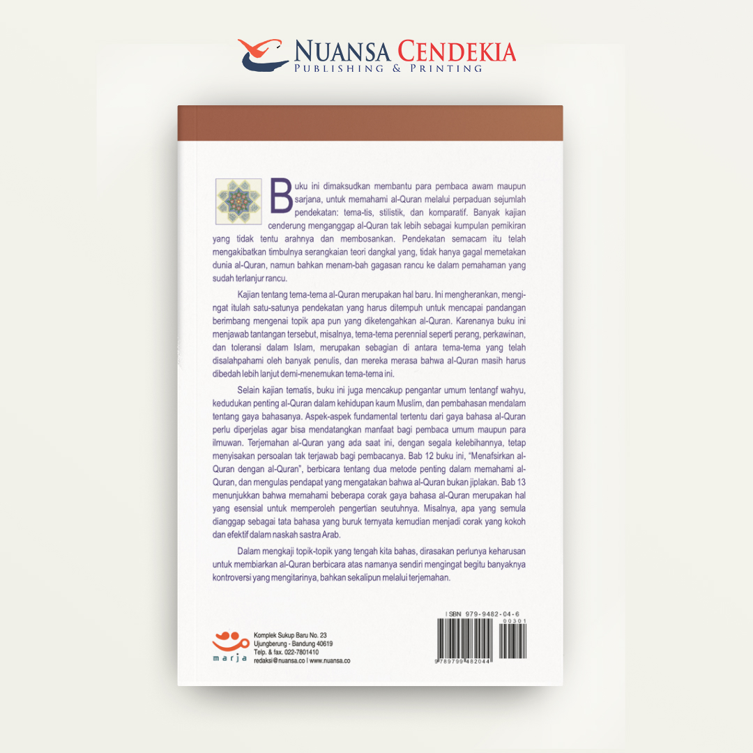 “Buku ini dimaksudkan membantu para pembaca awam maupun sarjana, untuk memahami al-Quran melalui perpaduan sejumlah pendekatan: tema-tis, stilistik, dan komparatif. Banyak kajian cenderung menganggap al-Quran tak lebih sebagai kumpulan pemikiran yang tidak tentu arahnya dan membosankan. Pendekatan semacam itu telah mengakibatkan timbulnya serangkaian teori dangkal yang, tidak hanya gagal memetakan dunia al-Quran, namun bahkan menam-bah gagasan rancu ke dalam pemahaman yang sudah terlanjur rancu.