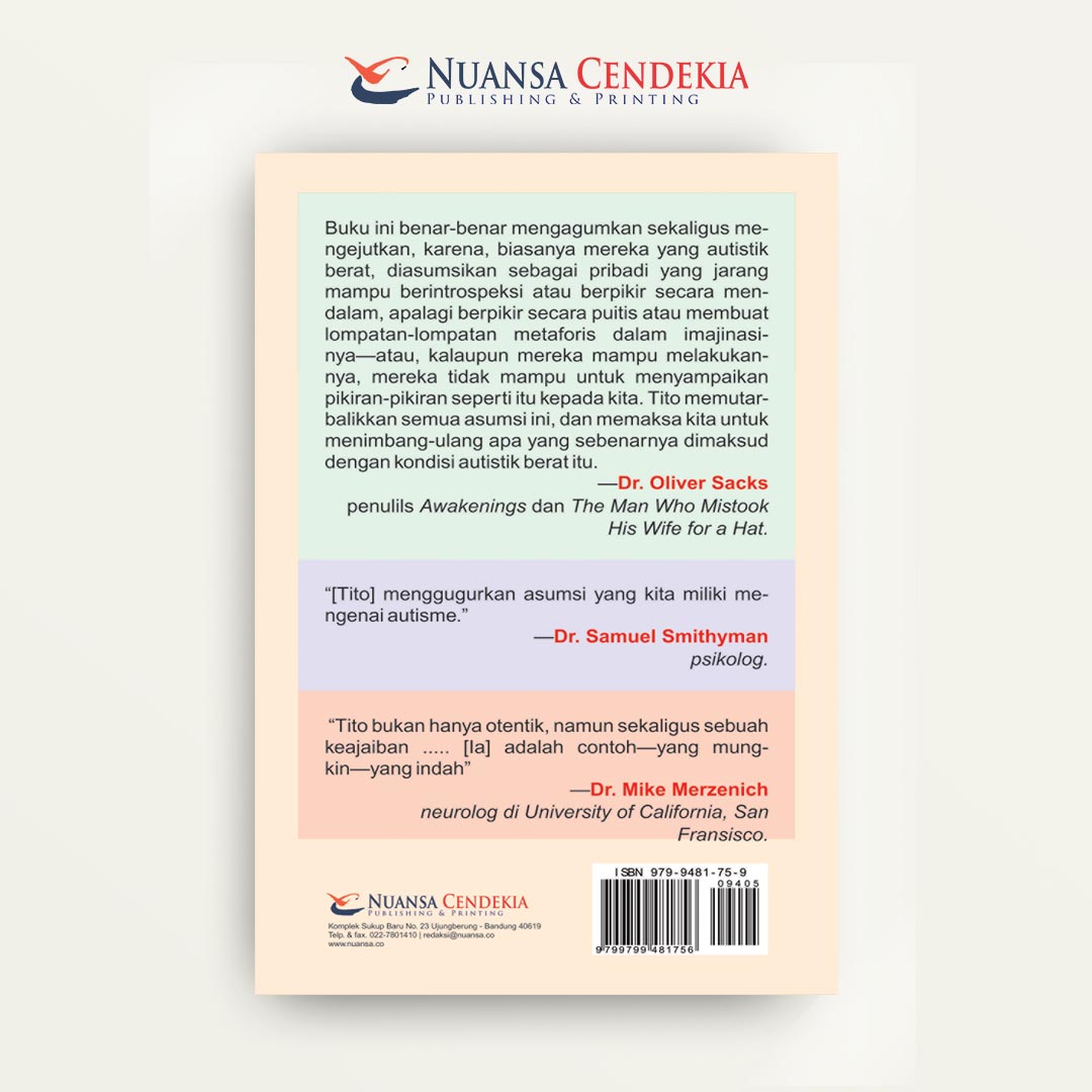 Buku ini benar-benar mengagumkan sekaligus mengejutkan, karena, biasanya mereka yang autistik berat, diasumsikan sebagai pribadi yang jarang mampu berintrospeksi atau berpikir secara mendalam, apalagi berpikir secara puitis atau membuat lompatan-lompatan metaforis dalam imajinasinya—atau, kalaupun mereka mampu melakukannya, mereka tidak mampu untuk menyampaikan pikiran-pikiran seperti itu kepada kita. Tito memutarbalikkan semua asumsi ini, dan memaksa kita untuk menimbang-ulang apa yang sebenarnya dimaksud dengan kondisi autistik berat itu. —Dr. Oliver Sacks, penulils Awakenings dan The Man Who Mistook His Wife for a Hat.