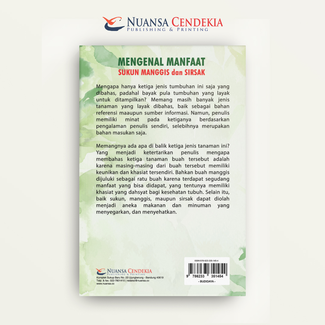 Buku "Mengenal Manfaat Sukun, Manggis, dan Sirsak" adalah panduan informatif yang secara spesifik mengupas tuntas potensi gizi dan khasiat kesehatan dari tiga buah tropis unggulan ini. Pembaca akan diperkenalkan pada kandungan bioaktif penting yang terdapat pada masing-masing buah—mulai dari serat, vitamin, mineral, hingga senyawa antioksidan kuat seperti xanthone pada manggis—serta cara pemanfaatannya, baik sebagai bahan pangan maupun pengobatan tradisional. Buku ini memberikan pengetahuan praktis mengenai aplikasi kuliner dan farmakologis dari sukun, manggis, dan sirsak untuk membantu meningkatkan daya tahan tubuh, mencegah penyakit degeneratif, dan mendukung gaya hidup sehat secara alami.