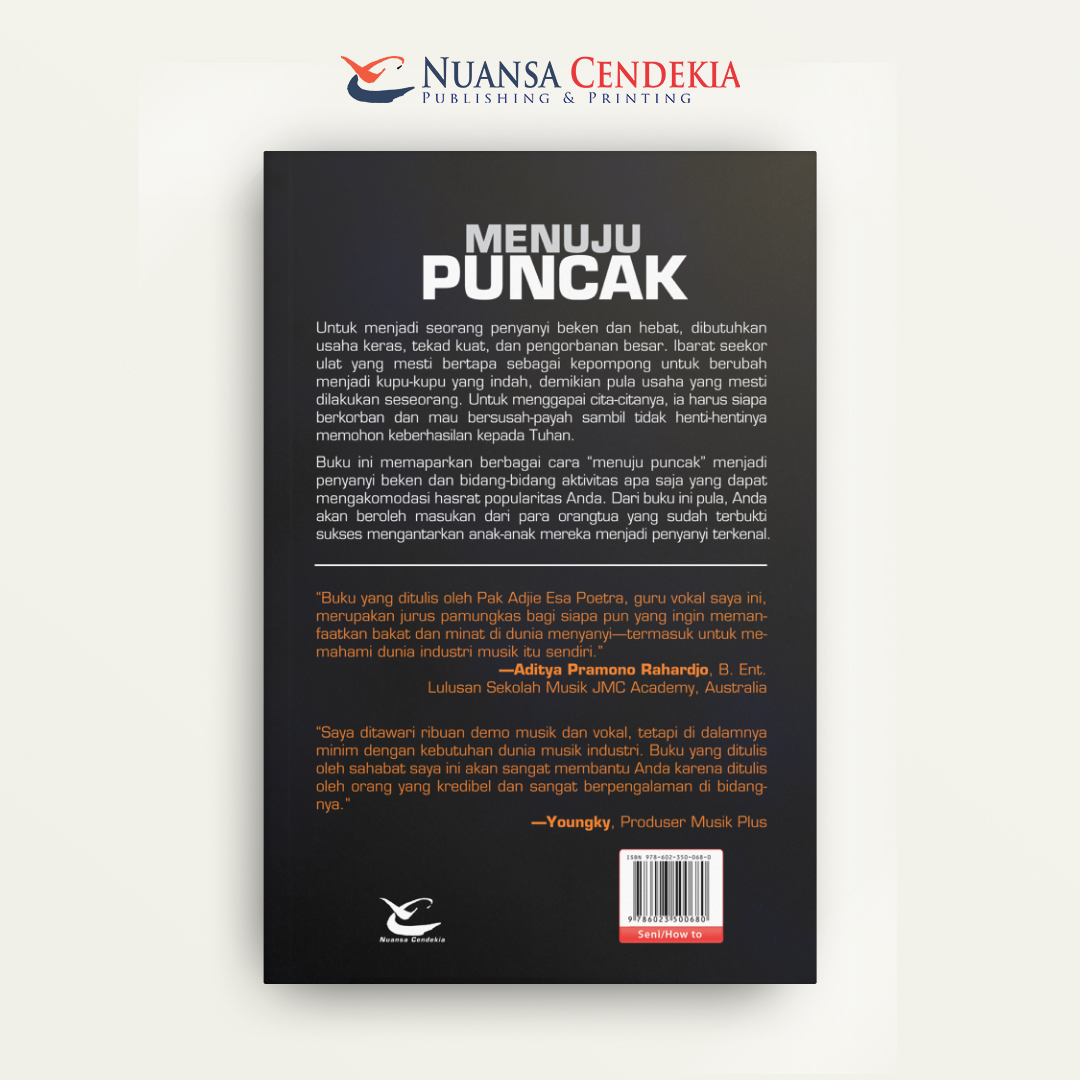 Buku Menuju Puncak: Kiat Sukses Menjadi Penyanyi Beken adalah panduan praktis dan strategis yang ditujukan bagi para pemuda berbakat yang berhasrat serius mengejar impian sebagai penyanyi terkenal di industri musik yang sangat kompetitif. Ditulis oleh seorang guru vokal yang berpengalaman melahirkan artis-artis top, buku ini tidak hanya mengulas pentingnya mengasah potensi vokal, berinovasi, dan menjadi trendsetter, tetapi juga memaparkan secara realistis berbagai kiat non-teknis seperti manajemen karier, strategi membangun citra positif di mata publik, cara melambungkan dan memelihara popularitas, hingga memanfaatkan ketenaran, menjadikannya pedoman komprehensif untuk mencapai kesuksesan profesional dan melegenda.