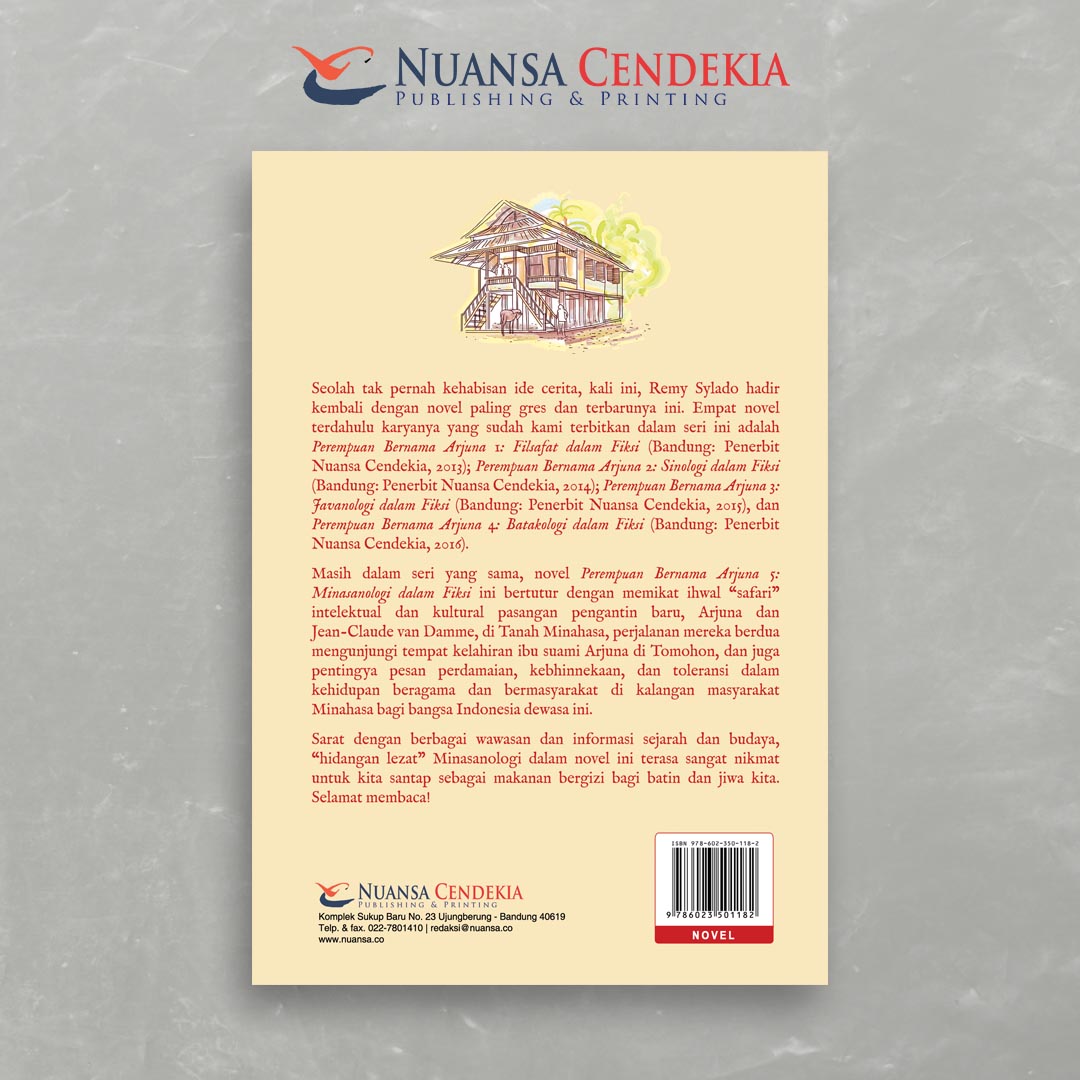 Masih dalam seri yang sama, novel Perempuan Bernama Arjuna 5: Minasanologi dalam Fiksi ini bertutur dengan memikat ihwal safari intelektual dan kultural pasangan pengantin baru, Arjuna dan Jean-Claude van Damme, di Tanah Minahasa, perjalanan mereka berdua mengunjungi tempat kelahiran ibu suami Arjuna di Tomohon, dan juga pentingya pesan perdamaian, kebhinnekaan, dan toleransi dalam kehidupan beragama dan bermasyarakat di kalangan masyarakat Minahasa bagi bangsa Indonesia dewasa ini.- Penulis: Remy Sylado
