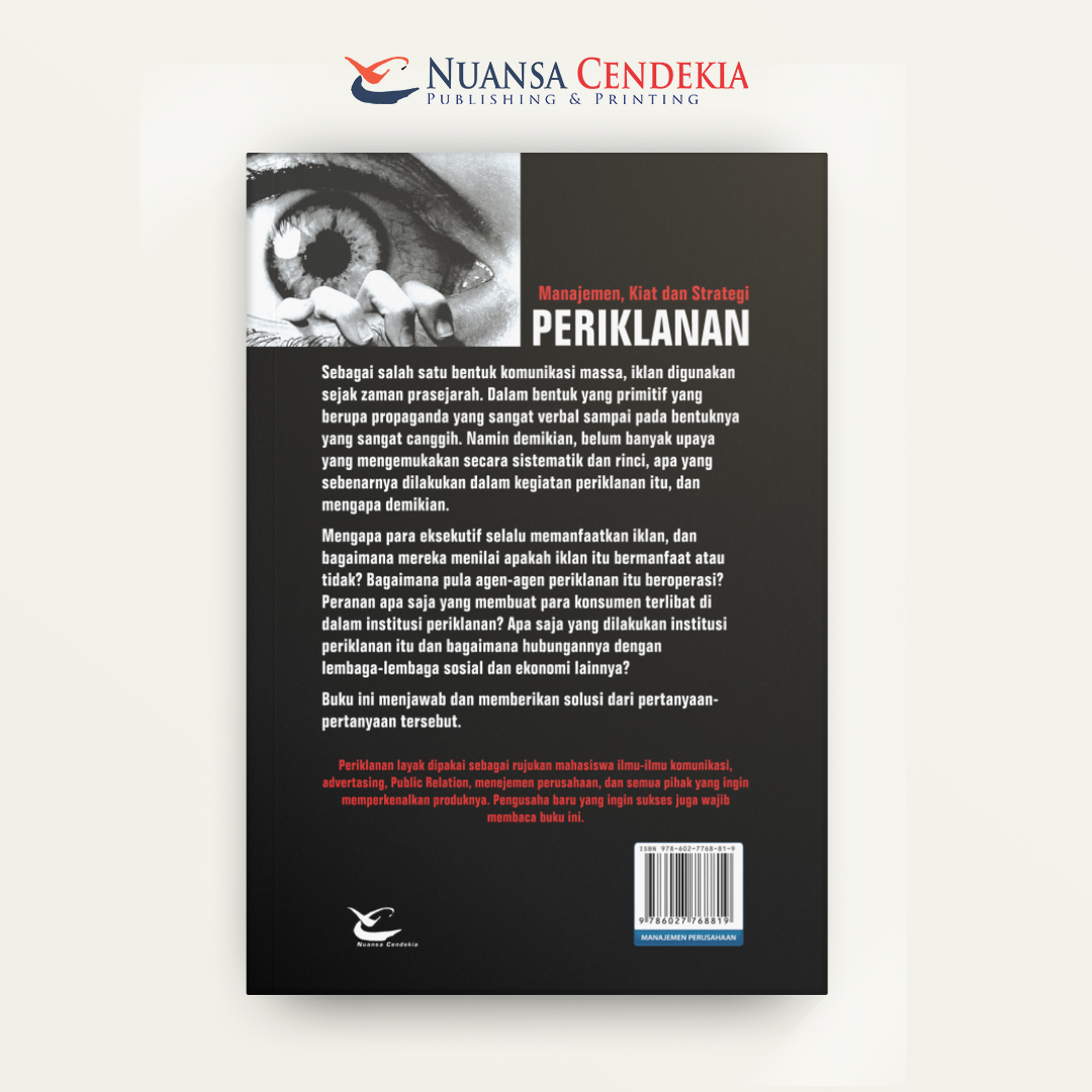 Periklanan: Manajemen, Kiat dan Strategi (Revisi) adalah panduan mutakhir yang membahas secara tuntas aspek manajemen periklanan, mulai dari perencanaan hingga evaluasi, dengan fokus kuat pada kiat dan strategi yang efektif di pasar modern. Edisi revisi ini menyajikan kerangka kerja komprehensif untuk mengembangkan kampanye periklanan yang sukses, mencakup analisis konsumen, penentuan sasaran, pengembangan pesan kreatif, dan pemilihan media yang tepat, sambil memasukkan perkembangan terbaru seperti periklanan digital, media sosial, dan pengukuran kinerja (metrics) kampanye. Buku ini bertujuan membekali pembaca, baik mahasiswa maupun profesional, dengan pengetahuan mendalam mengenai cara mengelola anggaran iklan, memanfaatkan teknologi baru, dan merumuskan strategi periklanan yang dapat meningkatkan penjualan dan membangun citra merek yang kuat dan berkelanjutan.