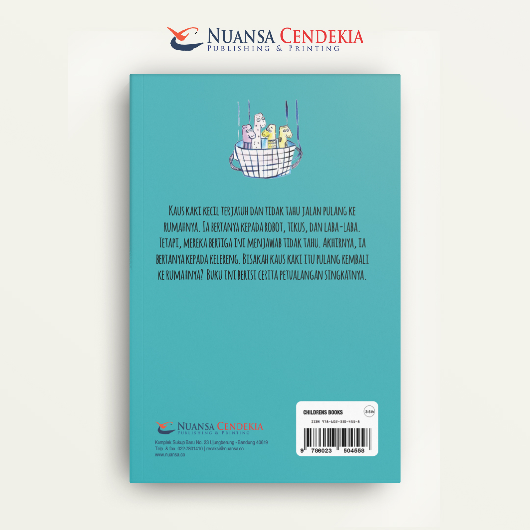 Kaus kaki kecil terjatuh dan tidak tahu jalan pulang ke rumahnya. Ia bertanya kepada robot, tikus, dan laba-laba. Tetapi, mereka bertiga ini menjawab tidak tahu. Akhirnya, ia bertanya kepada kelereng. Bisakah kaus kaki itu pulang kembali ke rumahnya?  Buku ini berisi cerita petualangan singkatnya.