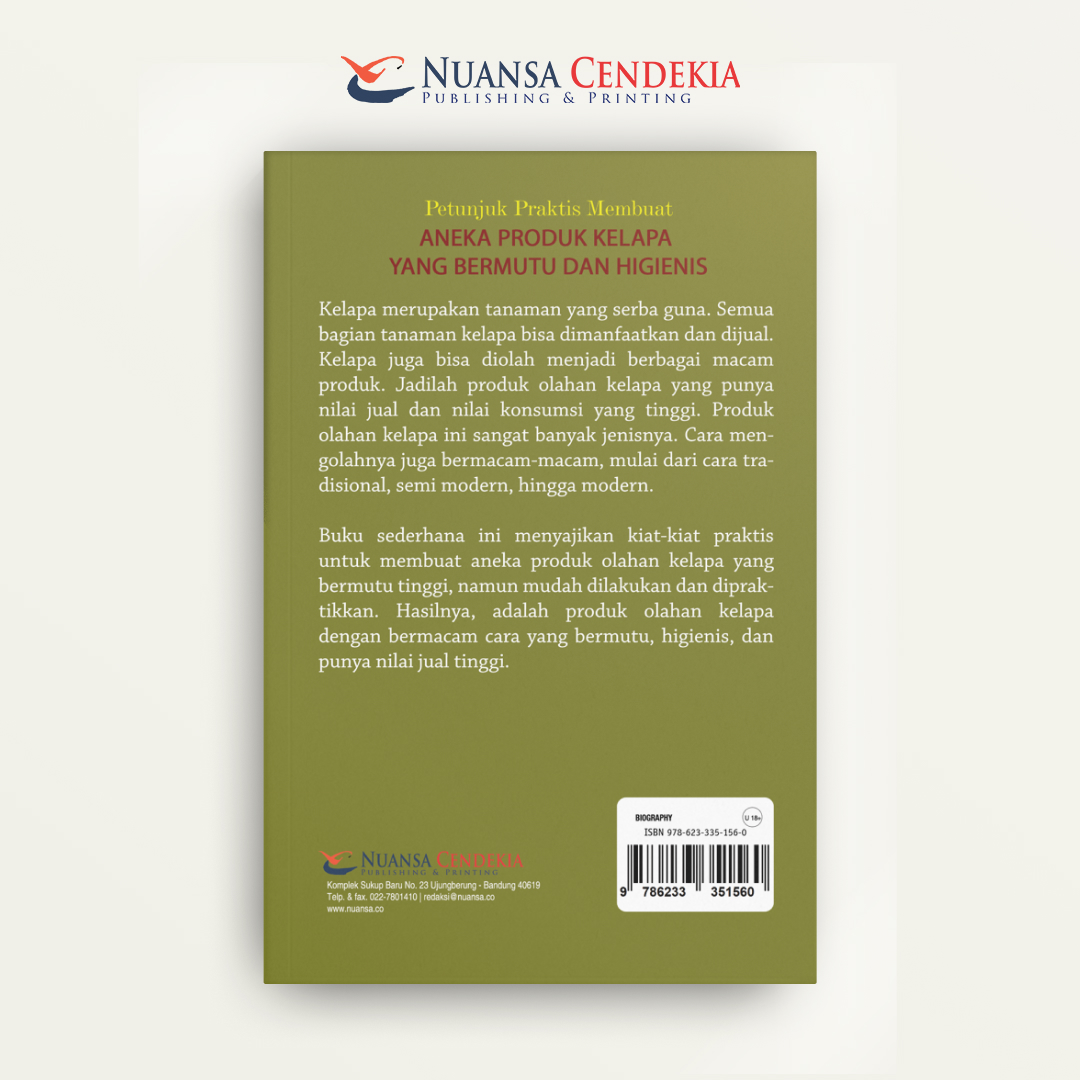 Buku sederhana ini menyajikan kiat-kiat praktis untuk membuat aneka produk olahan kelapa yang bermutu tinggi, namun mudah dilakukan dan dipraktikkan. Hasilnya, adalah produk olahan kelapa dengan bermacam cara yang bermutu, higienis, dan punya nilai jual tinggi.