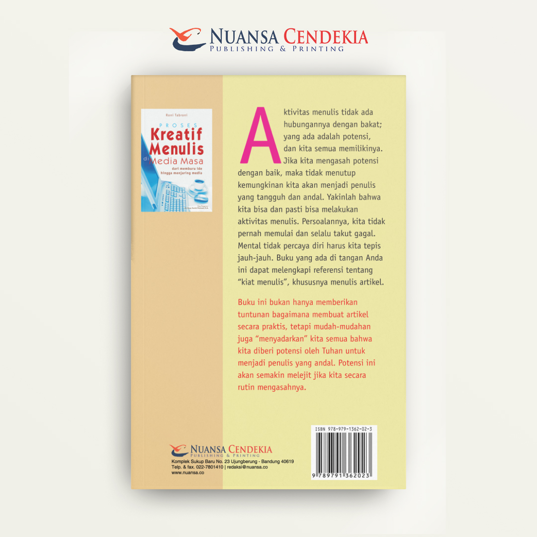Proses Kreatif Menulis Media Masa adalah panduan praktis dan inspiratif yang mengupas tuntas tahapan fundamental dan strategi kreatif yang diperlukan untuk menghasilkan tulisan berkualitas tinggi yang layak dimuat di berbagai platform media massa, baik cetak maupun daring. Buku ini membimbing pembaca mulai dari penemuan ide yang relevan dan menarik, teknik pengumpulan serta verifikasi data, struktur penulisan efektif untuk genre berita, opini, dan artikel fitur, hingga kiat-kiat menyunting naskah agar lolos kurasi redaksi. Dengan penekanan pada pengembangan gaya penulisan yang khas dan kemampuan berpikir kritis, buku ini menjadi referensi penting bagi jurnalis pemula, penulis lepas, dan siapa pun yang ingin menguasai seni menyampaikan pesan yang kuat dan berdampak melalui media massa.
