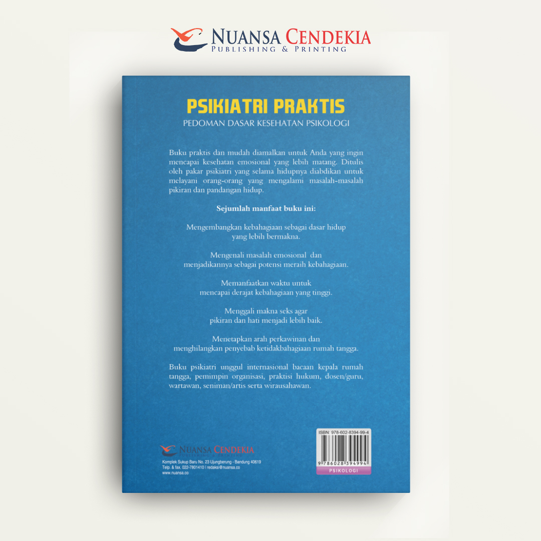 Buku praktis dan mudah diamalkan untuk Anda yang ingin mencapai kesehatan emosional yang lebih matang. Ditulis oleh pakar psikiatri yang selama hidupnya diabdikan untuk melayani orang-orang yang mengalami masalah-masalah pikiran dan pandangan hidup. Sejumlah manfaat buku ini: Mengembangkan kebahagiaan sebagai dasar hidup yang lebih bermakna. Mengenali masalah emosional dan menjadikannya sebagai potensi meraih kebahagiaan. Memanfaatkan waktu untuk mencapai derajat kebahagiaan yang tinggi. Menggali makna seks agar pikiran dan hati menjadi lebih baik. Menetapkan arah perkawinan dan menghilangkan penyebab ketidakbahagiaan rumah tangga. Buku psikiatri unggul internasional bacaan kepala rumah tangga, pemimpin organisasi, praktisi hukum, dosen/guru, wartawan, seniman/artis serta wirausahawan.