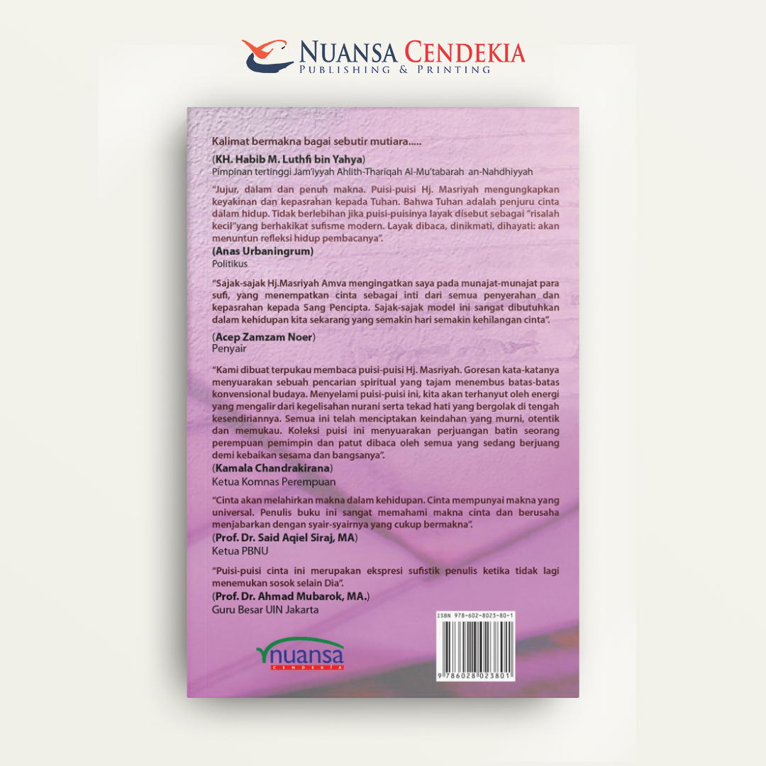 “Jujur, dalam dan penuh makna. Puisi-puisi Hj. Masriyah mengungkapkan keyakinan dan kepasrahan kepada Tuhan. Bahwa Tuhan adalah penjuru cinta dalam hidup. Tidak berlebihan jika puisi-puisinya layak disebut sebagai ”risalah kecil”yang berhakikat sufisme modern. Layak dibaca, dinikmati, dihayati: akan menuntun refleksi hidup pembacanya”.