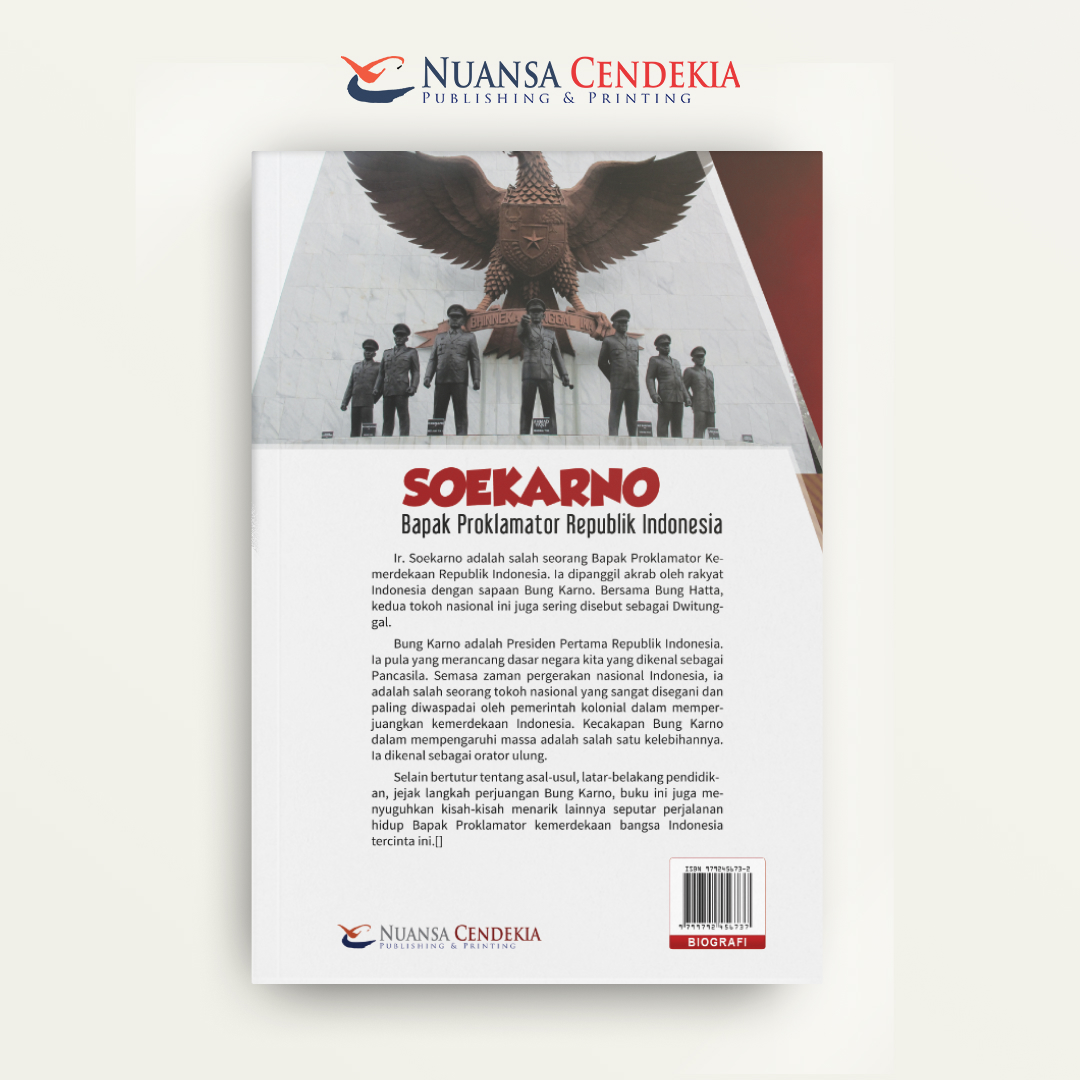 Buku ini merupakan bagian dari Seri Pahlawan Nasional yang mengulas secara padat dan inspiratif perjalanan hidup Soekarno, sang proklamator dan Presiden pertama Republik Indonesia, yang mendedikasikan hidupnya untuk cita-cita kemerdekaan bangsa. Karya ini menyoroti peran sentralnya sebagai orator ulung dan tokoh pemikir yang berhasil merumuskan Pancasila sebagai dasar negara, menggerakkan massa melalui pidato-pidatonya yang membakar semangat, serta memimpin momen krusial Proklamasi Kemerdejaan pada 17 Agustus 1945. Lebih dari sekadar biografi, buku ini menggambarkan bagaimana visi, perjuangan, dan keteguhan Soekarno melawan kolonialisme dan imperialisme telah menjadikannya Bapak Bangsa, meletakkan fondasi ideologis dan politik bagi keberlangsungan negara Indonesia modern.