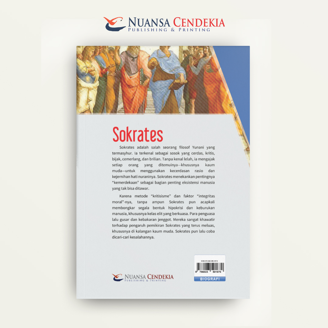 Buku yang berjudul Sokrates (tergantung pada penulisnya, namun fokusnya serupa) menyajikan eksplorasi mendalam mengenai kehidupan, pemikiran, dan warisan dari salah seorang filsuf Yunani paling berpengaruh, Sokrates dari Athena. Karya ini menggarisbawahi keunikan Sokrates sebagai "filsuf jalanan" yang tidak pernah meninggalkan karya tulis, melainkan menyebarkan ajarannya secara lisan melalui Metode Sokrates (atau elenchus): sebuah teknik dialog kritis dan tanya-jawab yang bertujuan untuk mengekspos kontradiksi dalam keyakinan seseorang dan membimbing mereka menuju pemahaman diri sejati, kebenaran, dan kebajikan. Buku ini juga membahas dampak revolusioner pemikirannya terhadap kaum muda, yang pada akhirnya memicu kegusaran penguasa Athena dan berujung pada pengadilan serta hukuman mati yang menjadikannya simbol integritas intelektual dan moral.