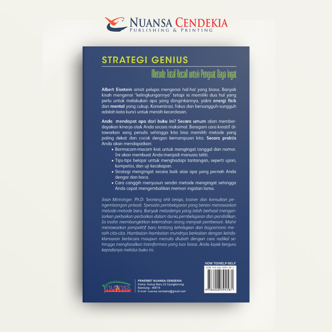 Buku "Strategi Genius: Metode Total Recall Untuk Penguat Daya Ingat" menyajikan panduan yang komprehensif mengenai teknik-teknik canggih dan sistematis untuk meningkatkan dan mengoptimalkan daya ingat seseorang hingga mencapai level "total recall" atau ingatan sempurna. Buku ini membahas secara mendalam berbagai metode mnemonik dan strategi kognitif, yang dirancang untuk mempermudah penyimpanan dan penarikan kembali informasi, mulai dari data numerik, nama, hingga konsep-konsep kompleks. Dengan menggabungkan prinsip-prinsip psikologi dan neurologi, buku ini memberikan langkah-langkah praktis dan latihan yang terstruktur, memungkinkan pembaca dari segala usia untuk melatih dan memperkuat memori mereka, sehingga dapat digunakan secara efektif dalam belajar, bekerja, dan kehidupan sehari-hari.