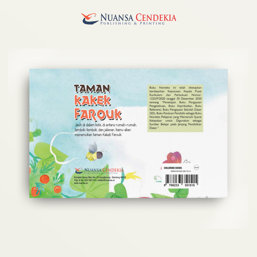 Jauh di dalam kota, dikelilingi oleh rumah-rumah, batu bata, dan aspal, kamu akan menemukan taman Kakek Farouk. Ayo baca, kita akan menemukan banyak tanaman di sana.