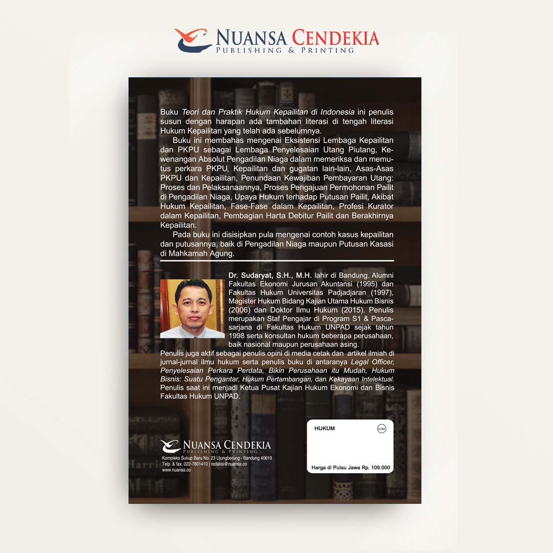 Buku Teori dan Praktik Hukum Kepailitan di Indonesia ini penulis susun dengan harapan ada tambahan literasi di tengah literasi Hukum Kepailitan yang telah ada sebelumnya.