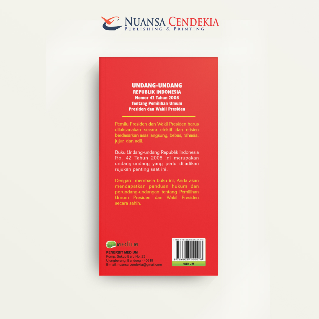 Buku Undang-undang RI No. 42 Tahun 2008 Tentang Pemilihan Umum Presiden dan Wakil Presiden adalah regulasi fundamental yang mengatur seluruh proses dan mekanisme pelaksanaan pemilihan pasangan calon Presiden dan Wakil Presiden secara langsung oleh rakyat di Indonesia. Undang-undang ini secara komprehensif menetapkan persyaratan calon, mekanisme pengajuan calon (melalui koalisi partai politik/ambang batas presidensial), tahapan kampanye, prosedur pemungutan dan penghitungan suara, serta aturan mengenai sistem dua putaran jika tidak ada pasangan yang memperoleh suara lebih dari 50% pada putaran pertama. Tujuan utama regulasi ini adalah untuk menjamin bahwa proses pemilihan kepemimpinan nasional berjalan secara demokratis, jujur, adil, transparan, dan akuntabel sesuai dengan prinsip-prinsip konstitusi.