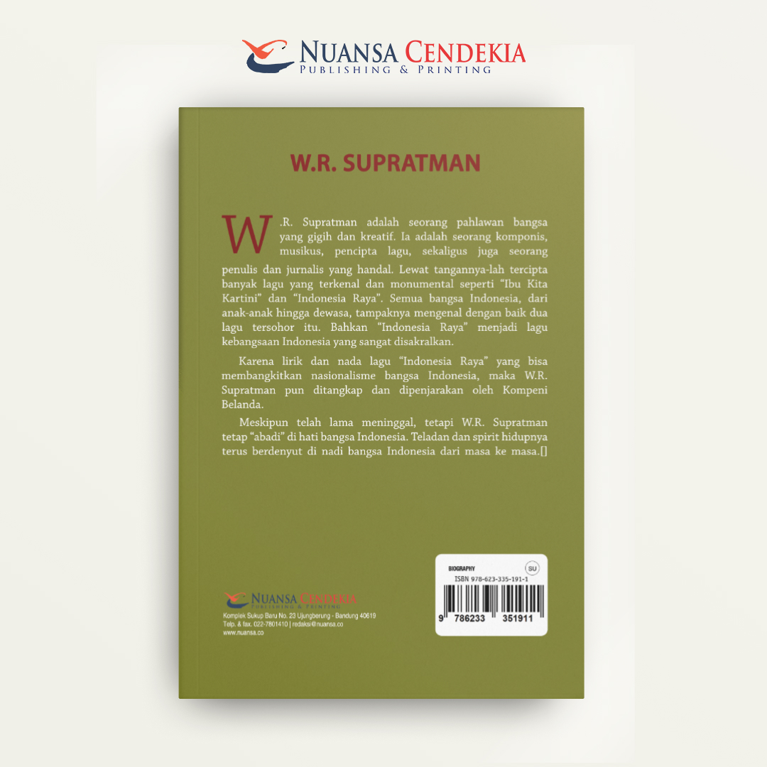 W.R. Supratman adalah seorang pahlawan bangsa yang gigih dan kreatif. Ia adalah seorang komponis, musikus, pencipta lagu, sekaligus juga seorang penulis dan jurnalis yang handal. Lewat tangannya-lah tercipta banyak lagu yang terkenal dan monumental seperti “Ibu Kita Kartini” dan “Indonesia Raya”. Semua bangsa Indonesia, dari anak-anak hingga dewasa, tampaknya mengenal dengan baik dua lagu tersohor itu. Bahkan “Indonesia Raya” menjadi lagu kebangsaan Indonesia yang sangat disakralkan.
